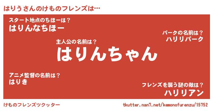 | 2回繰り返すあだ名 | 『はりはり』『ははりり』『ぼろぼろ』 |