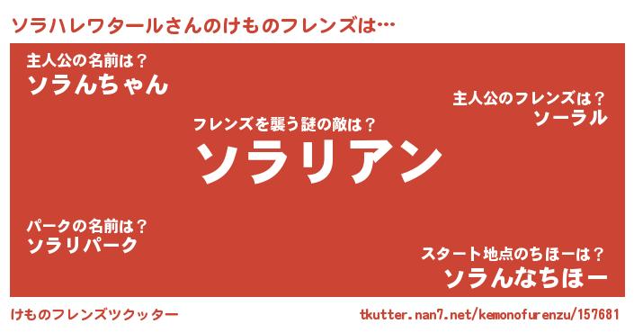 | ヒーロー風カッコイイあだ名 | 『正義の使者ソラハレワタール』 |