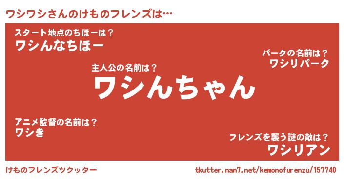 | 男性向けラノベタイトル風あだ名 | 『ワシワシの憂鬱』『魔弾の王とワシワシ』 |