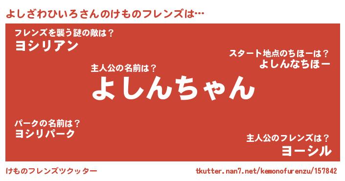 | 意味不明あだ名 | 『住所不定無職よしざわひいろ(7歳)』 |