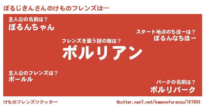 | 肩書あだ名 | 『ぼるじきん船長』『ぼるじきん上級大将』 |
