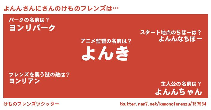 | 意味不明あだ名 | 『住所不定無職よんんさんに(8歳)』 |