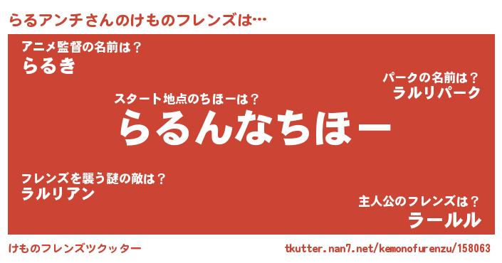 | 意味不明あだ名 | 『らるアンチフォーエバー』 |