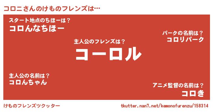 | 意味不明あだ名 | 『永久保存コロニ』『コロニフォーエバー』 |