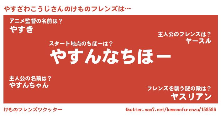 | 男性向けラノベタイトル風あだ名 | 『うちのやすざわこうじが世界を掌握している!』 |