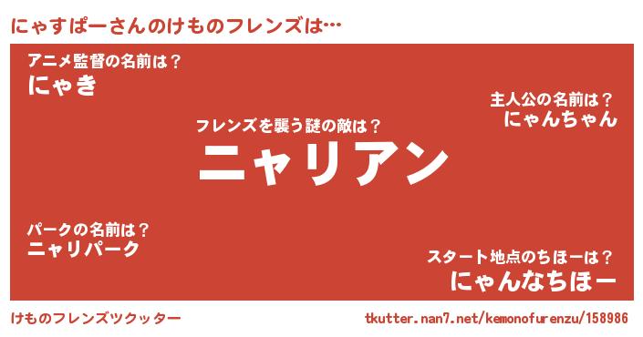 | ヒーロー風カッコイイあだ名 | 『友情の使者にゃすぱー』『幻影騎士ニャ』 |