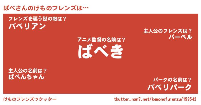 | ヒーロー風カッコイイあだ名 | 『幻影騎士バベ』『正義の使者ばべ』 |