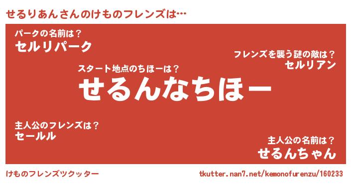 | 意味不明あだ名 | 『住所不定無職せるりあん(85歳)』 |