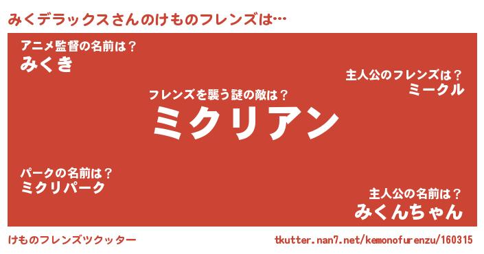 | ヒーロー風カッコイイあだ名 | 『正義の使者みくデラックス』 |