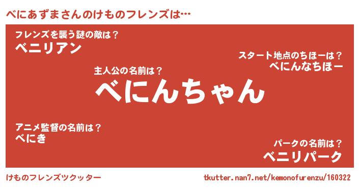 | 2回繰り返すあだ名 | 『べにべに』『れんれん』『ぼろぼろ』 |