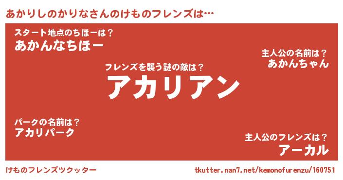 | ポケモン風あだ名 | 『アックウザ』『アカリダネ』 |