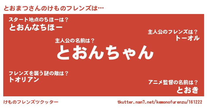 | 男性向けラノベタイトル風あだ名 | 『とおまつに滅ぼされるだけの簡単なお仕事です』 |