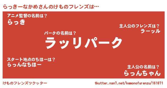 | 欧米人風あだ名 | 『ケンブリッジらっきーなかめ』 |
