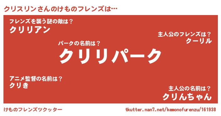 | ヒーロー風カッコイイあだ名 | 『最強戦士クリスリン』『仮面クリダー』 |