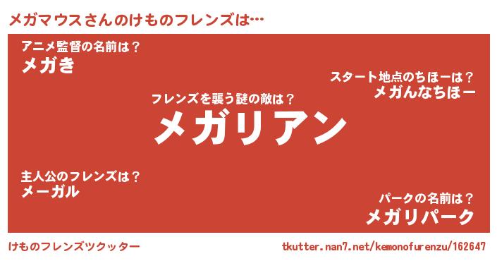 | ヒーロー風カッコイイあだ名 | 『仮面メガダー』『慈愛の使者メガマウス』 |