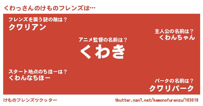 | 意味不明あだ名 | 『とにかく怪しいくわっ』『自称くわっ』 |