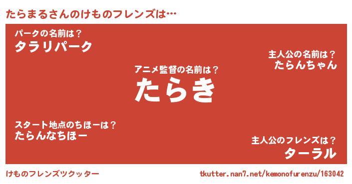| ヒーロー風カッコイイあだ名 | 『魔戒騎士タラ』『超時空戦士タラマル』 |
