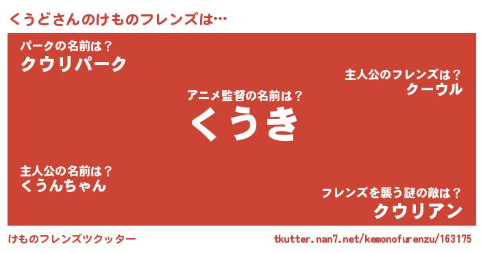 | 意味不明あだ名 | 『住所不定無職くうど(5歳)』『自称くうど』 |