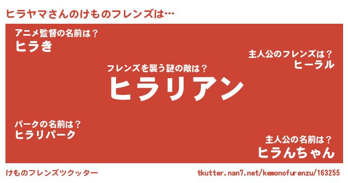 | 男性向けラノベタイトル風あだ名 | 『おまえをオタクにしてやるから、俺をヒラヤマにしてくれ! 』 |