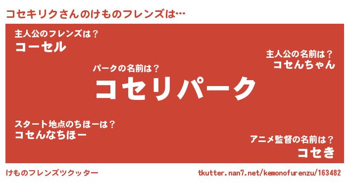 | 肩書あだ名 | 『コセキリク総統』『コセキリク先生』 |