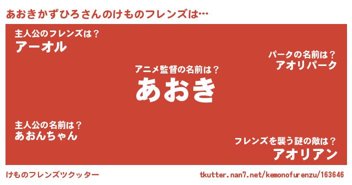 | ポケモン風あだ名 | 『ヒアオキカズヒロ』『アーオイ』 |