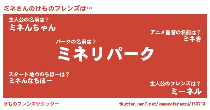 | 意味不明あだ名 | 『自称ミネ』『住所不定無職ミネ(8歳)』 |
