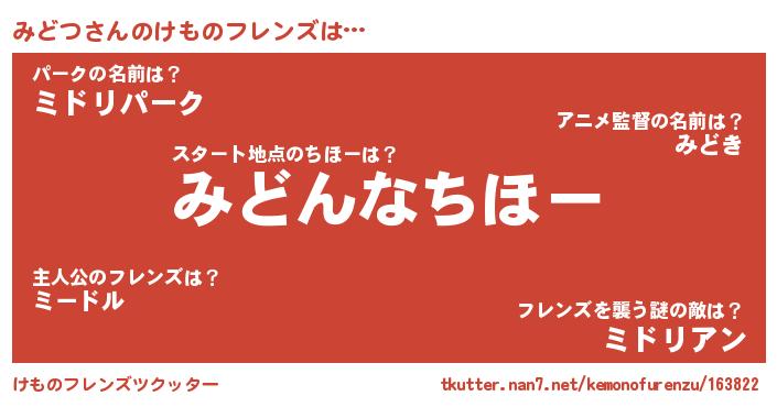 | 意味不明あだ名 | 『みどつフォーエバー』『自称みどつ』 |