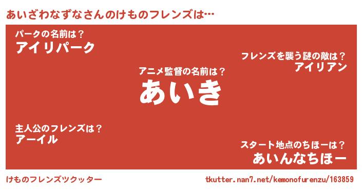 | 男性向けラノベタイトル風あだ名 | 『この素晴らしい世界にあいざわなずなを!』 |