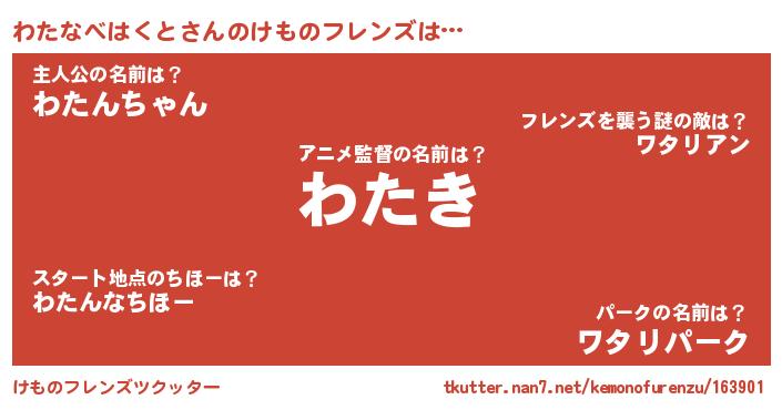 | ピコ太郎風あだ名 | 『ワタ太郎』『ワコ史郎』『ワワ太郎』 |