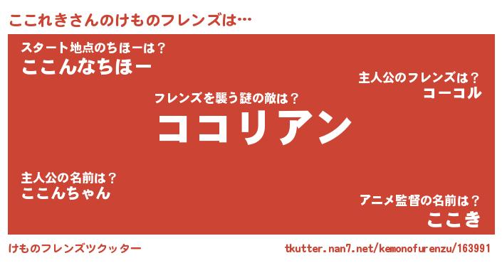| 2回繰り返すあだ名 | 『わいわい』『ぼちぼち』『ここここ』 |