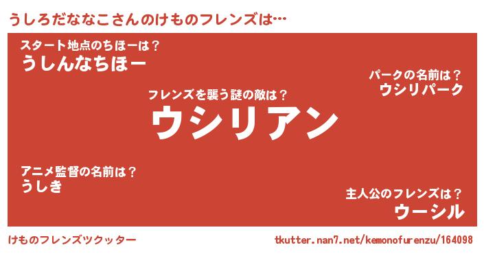 | 意味不明あだ名 | 『住所不定無職うしろだななこ(89歳)』 |