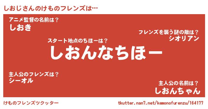 | 2回繰り返すあだ名 | 『すーすー』『ししおお』『ぬれぬれ』 |