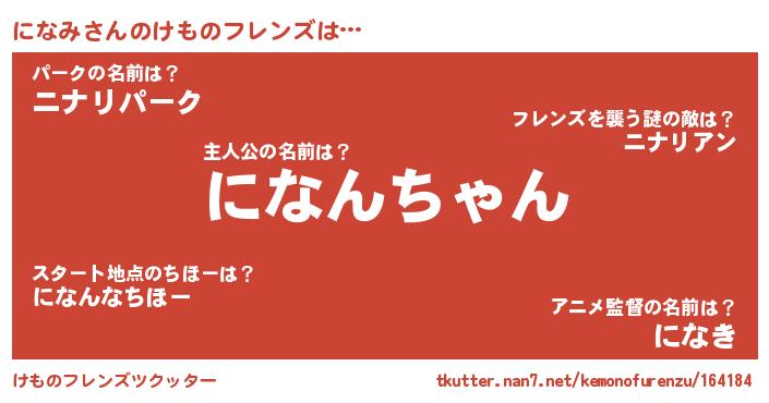 | ヒーロー風カッコイイあだ名 | 『スーパーニナミ』『仮面ニナダー』 |