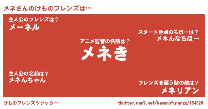 | ポケモン風あだ名 | 『メネキング』『ヒメネ』『メネゴンZ』 |