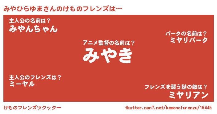 | ヒーロー風カッコイイあだ名 | 『黄金騎士ミヤ』『スーパーミヤヒラユマ』 |