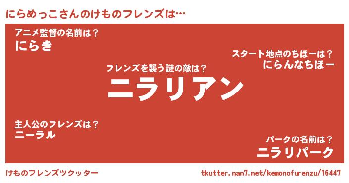 | ヒーロー風カッコイイあだ名 | 『慈愛の使者にらめっこ』『暗黒騎士ニラ』 |