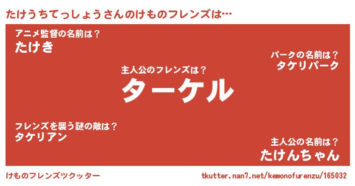 | ヘコむあだ名 | 『たけうちてっしょう(苦笑)』『たけお』 |