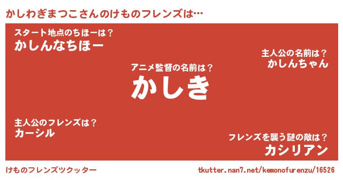 | ポケモン風あだ名 | 『ヒカシワギマツコ』『カシゴンZ』 |