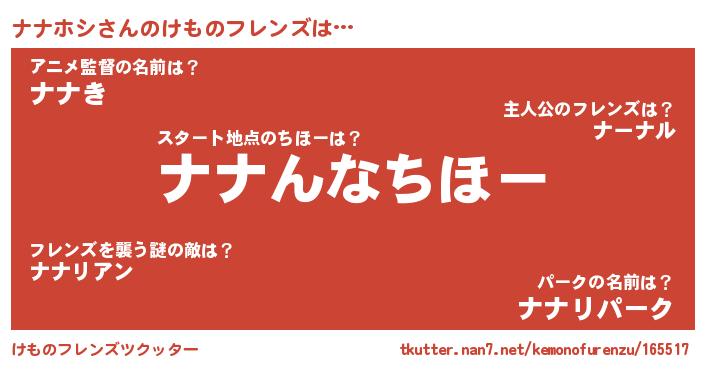 | ファンタジー風あだ名 | 『エターナルナナホシー』『ゼナナトゥ』 |