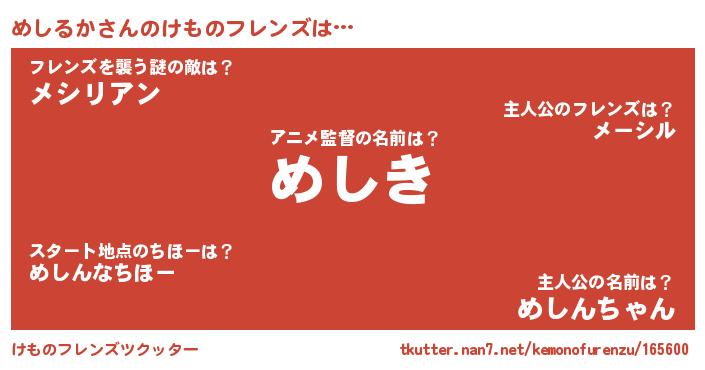 | 料理風あだ名 | 『めしるかの豆乳スープ』 |