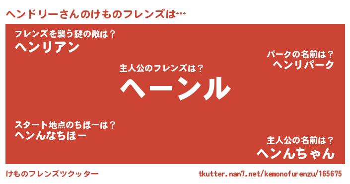 | 意味不明あだ名 | 『住所不定無職ヘンドリー(12歳)』 |