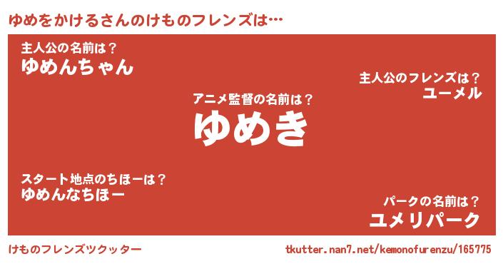 | ヒーロー風カッコイイあだ名 | 『天弓騎士ユメ』『スーパーユメヲカケル』 |