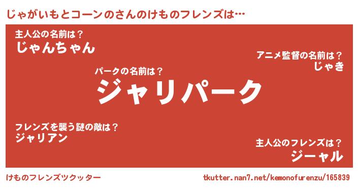 | 意味不明あだ名 | 『自称じゃがいもとコーンの』 |
