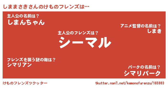 | 男性向けラノベタイトル風あだ名 | 『しままさきに滅ぼされるだけの簡単なお仕事です』 |