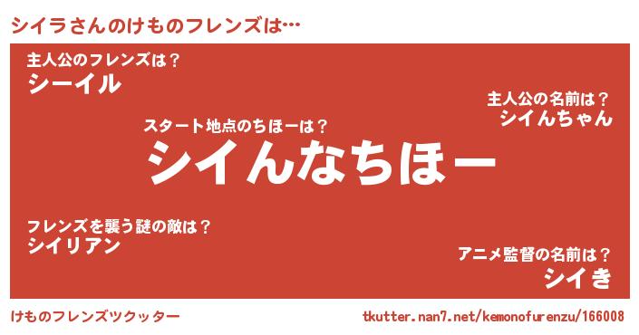 | 2回繰り返すあだ名 | 『れんれん』『でれでれ』『シシイイ』 |