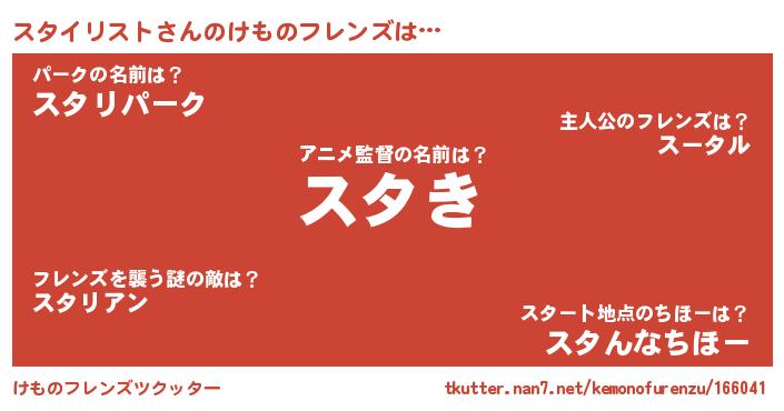 | ヒーロー風カッコイイあだ名 | 『幻影騎士スタ』『究極戦士スタイリスト』 |