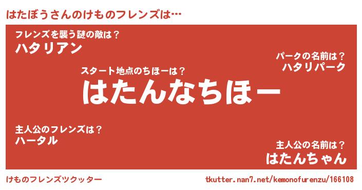 | ヒーロー風カッコイイあだ名 | 『仮面ハタダー』『ウルトラはたぼうマン』 |