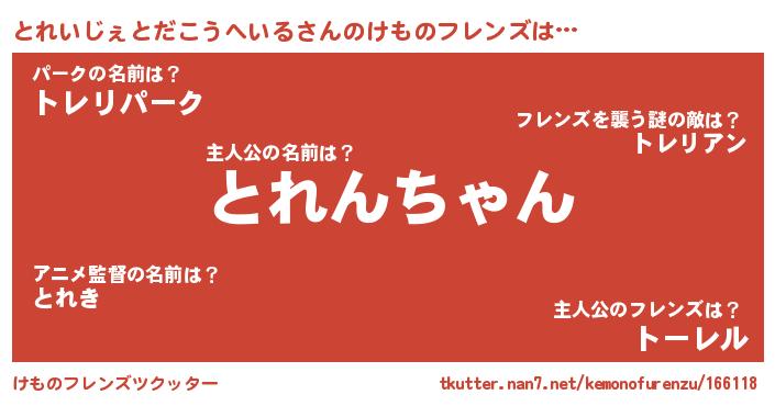 | 男性向けラノベタイトル風あだ名 | 『とれいじぇとだこうへいるの憂鬱』 |
