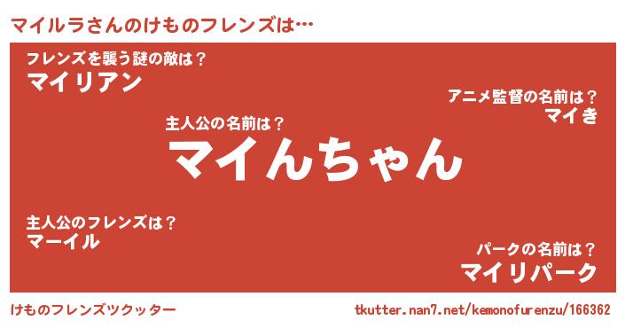 | 男性向けラノベタイトル風あだ名 | 『この素晴らしい世界にマイルラを!』 |