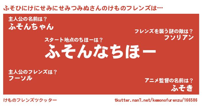 | ポケモン風あだ名 | 『フソゴンZ』『フソヒダネ』 |
